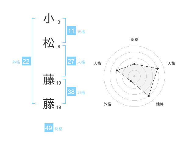 小松 藤藤さんを姓名の画数から五運を鑑定