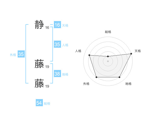 静 藤藤さんの総格は54画の1点!