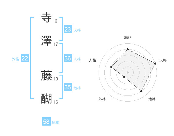 寺澤 藤醐さんを姓名の画数から五運を鑑定