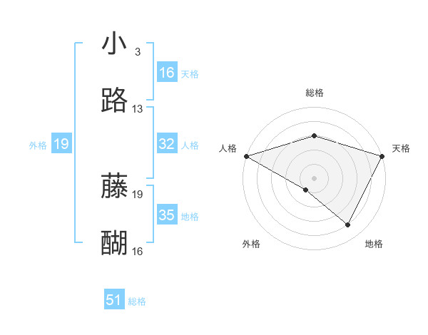 小路 藤醐さんを姓名の画数から五運を鑑定