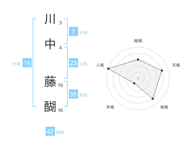 川中 藤醐さんを姓名の画数から五運を鑑定
