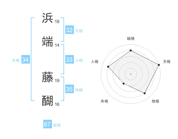 浜端 藤醐さんを姓名の画数から五運を鑑定