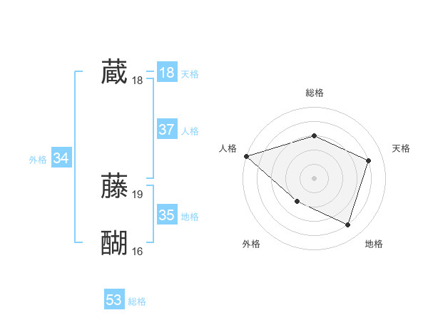 蔵 藤醐さんの総格は53画の3点!