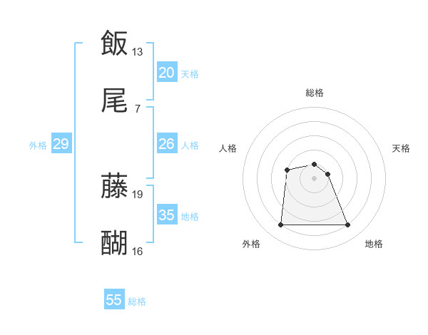 飯尾 藤醐さんの天格は20画の1点!