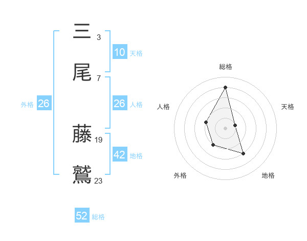 三尾 藤鷲さんの総格は52画の4点!