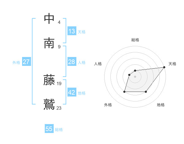 中南 藤鷲さんの天格は13画の5点!