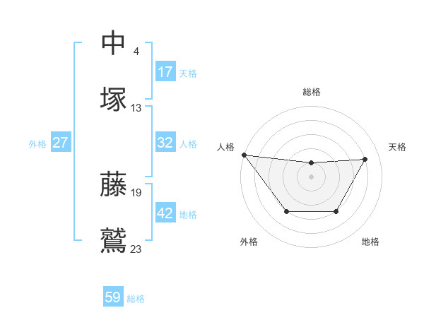 中塚 藤鷲さんを姓名の画数から五運を鑑定
