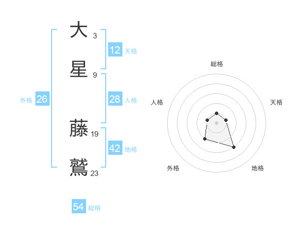 大星 藤鷲さんを姓名の画数から五運を鑑定