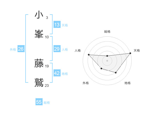 小峯 藤鷲さんを姓名の画数から五運を鑑定