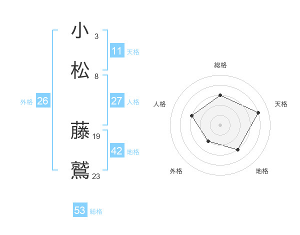 小松 藤鷲さんの総格は53画の3点!