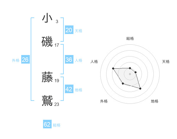 小磯 藤鷲さんの総格は62画の1点!