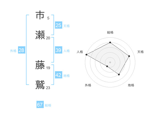 市瀬 藤鷲さんの総格は67画の4点!