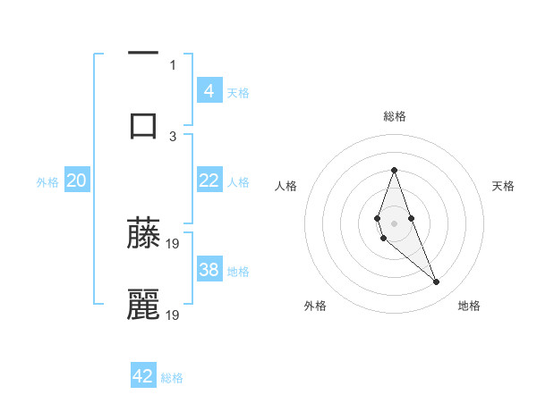 一口 藤麗さんの総格は42画の3点!