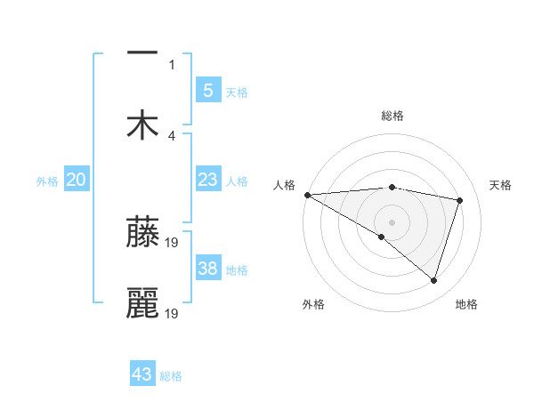 一木 藤麗さんの総格は43画の2点!