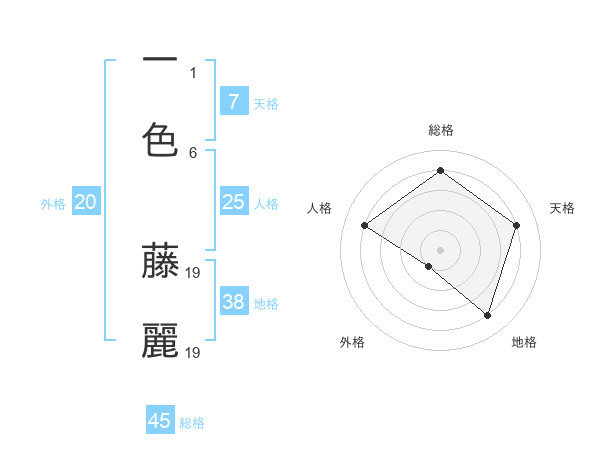 一色 藤麗さんの総格は45画の4点!