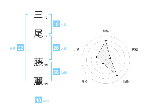 三尾 藤麗さんの総格は48画の4点!