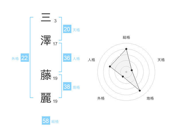 三澤 藤麗さんの地格は38画の4点!