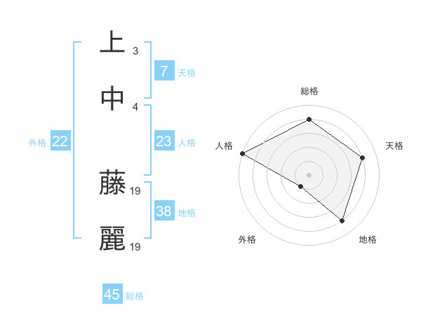 上中 藤麗さんを姓名の画数から五運を鑑定
