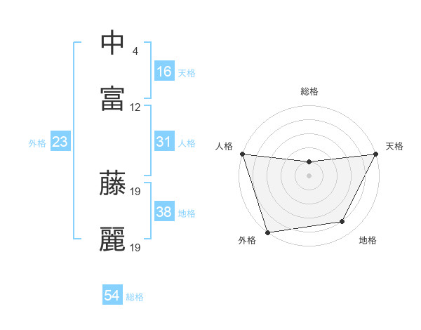 中富 藤麗さんの外格は23画の5点!