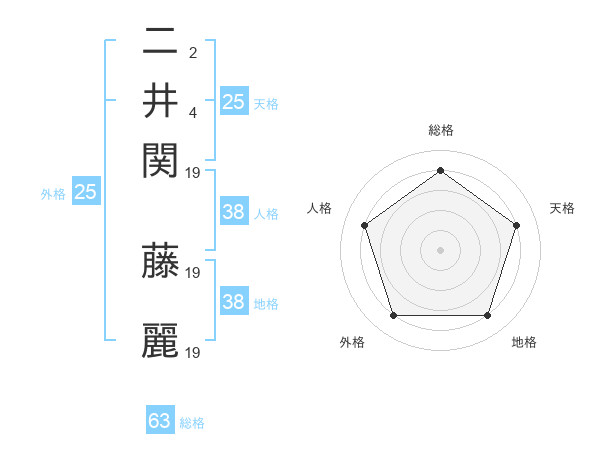 二井関 藤麗さんの地格は38画の4点!