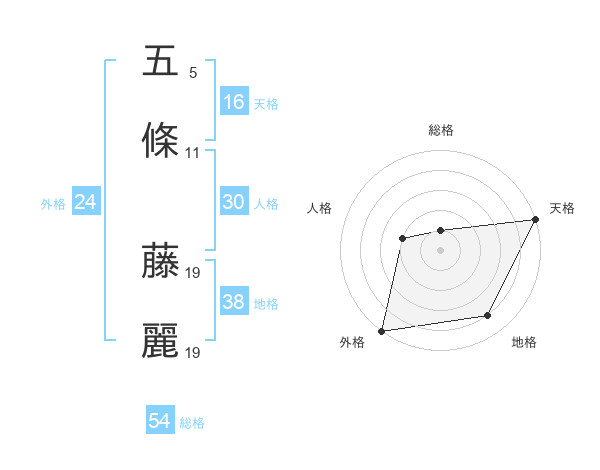 五條 藤麗さんの外格は24画の5点!