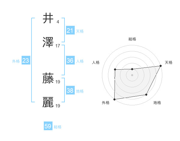 井澤 藤麗さんを姓名の画数から五運を鑑定