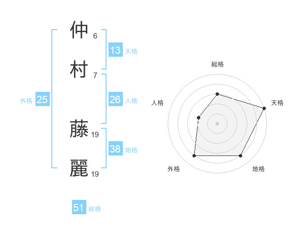 仲村 藤麗さんの総格は51画の3点!