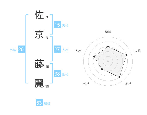 佐京 藤麗さんの総格は53画の3点!