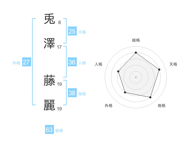 兎澤 藤麗さんを姓名の画数から五運を鑑定