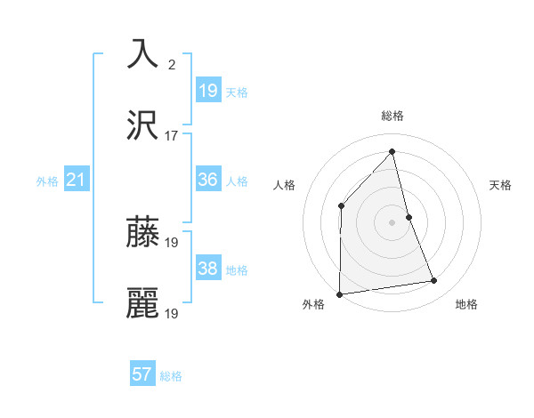 入沢 藤麗さんの総格は57画の4点!