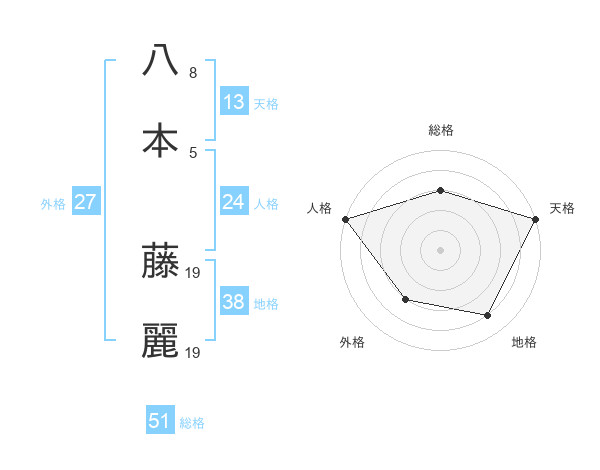 八本 藤麗さんの天格は13画の5点!