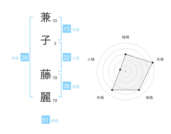 兼子 藤麗さんの総格は51画の3点!