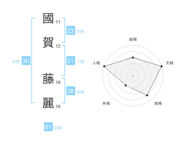 國賀 藤麗さんを姓名の画数から五運を鑑定
