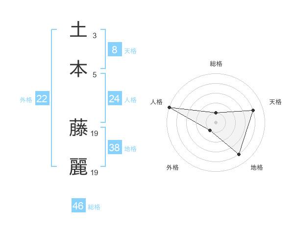 土本 藤麗さんの地格は38画の4点!