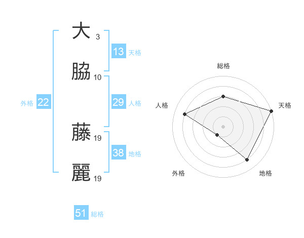 大脇 藤麗さんを姓名の画数から五運を鑑定