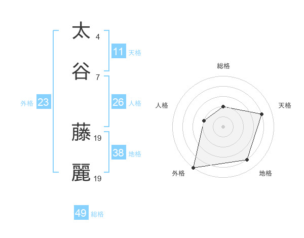 太谷 藤麗さんの総格は49画の2点!