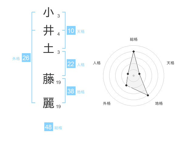 小井土 藤麗さんを姓名の画数から五運を鑑定