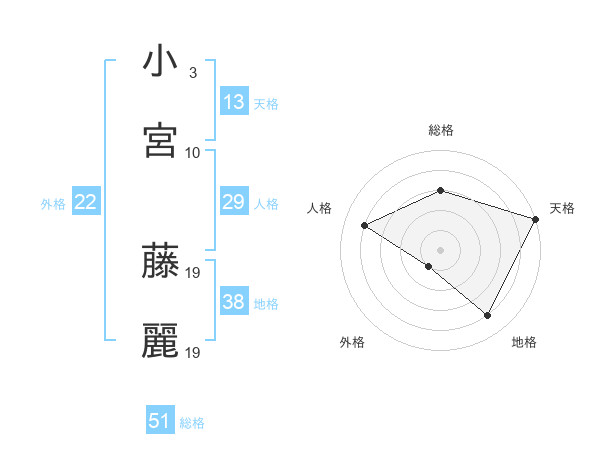 小宮 藤麗さんを姓名の画数から五運を鑑定