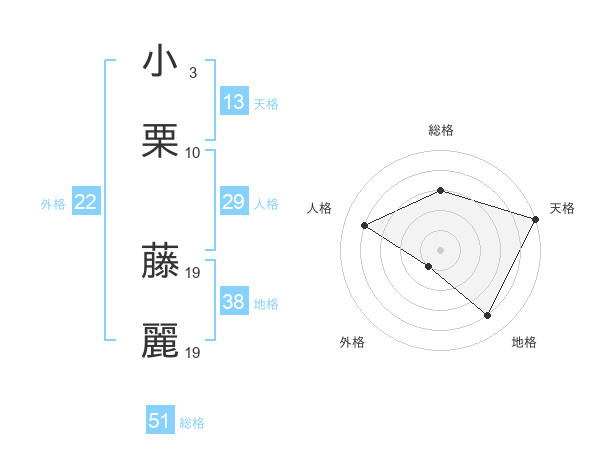 小栗 藤麗さんの総格は51画の3点!