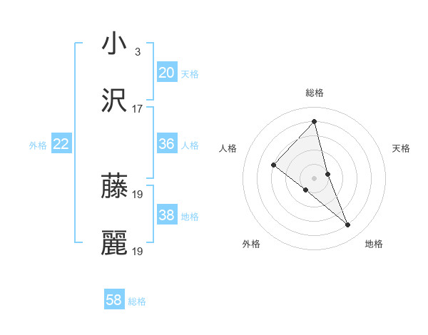小沢 藤麗さんを姓名の画数から五運を鑑定