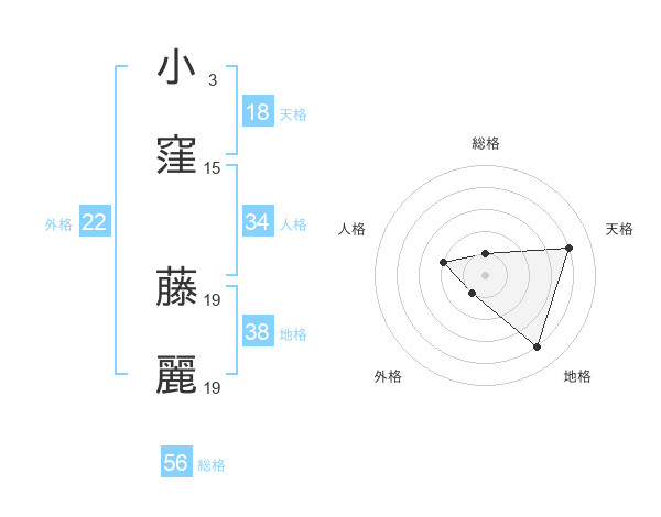 小窪 藤麗さんの外格は22画の1点!