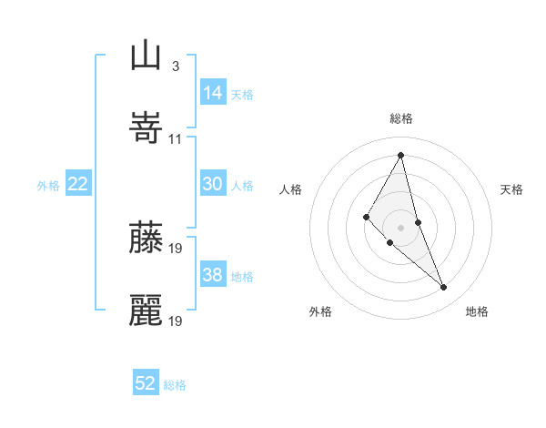 山嵜 藤麗さんの総格は52画の4点!