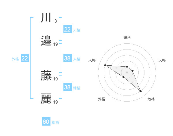 川邉 藤麗さんの外格は22画の1点!