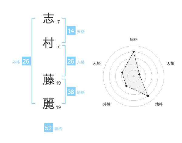 志村 藤麗さんを姓名の画数から五運を鑑定
