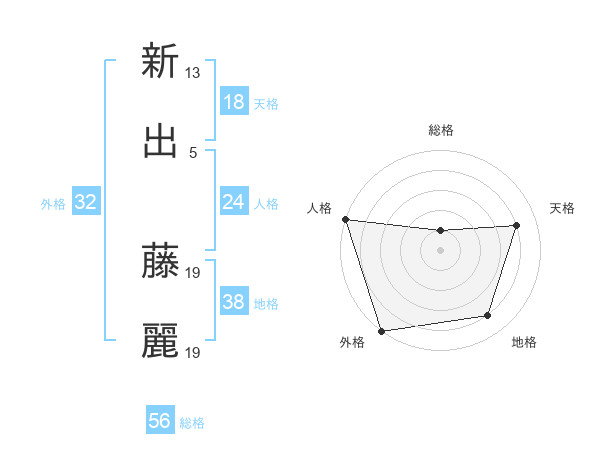 新出 藤麗さんの外格は32画の5点!