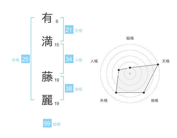 有満 藤麗さんを姓名の画数から五運を鑑定