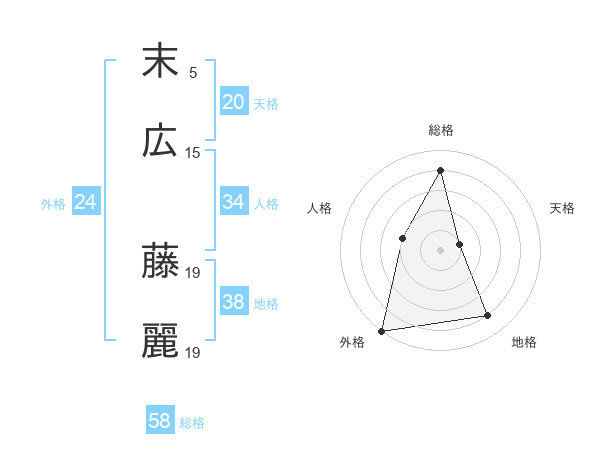 末広 藤麗さんの総格は58画の4点!