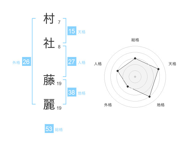 村社 藤麗さんを姓名の画数から五運を鑑定