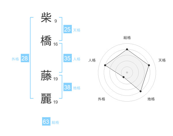 柴橋 藤麗さんを姓名の画数から五運を鑑定