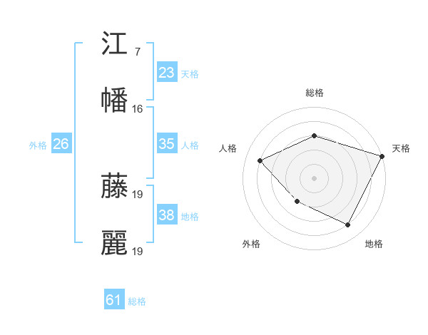 江幡 藤麗さんの総格は61画の3点!